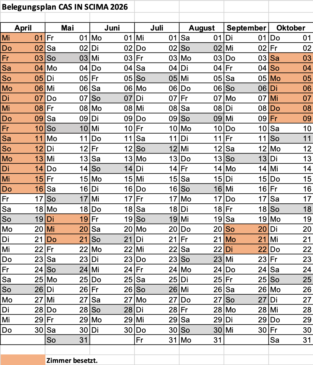 Bitte geben Sie uns mittels Kontaktformular oder Telefongespräch ihre Buchungsanfrage an.